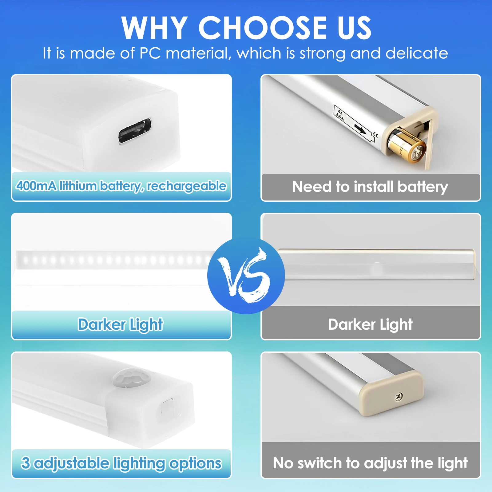 [Rechargeable RV Step Lights] This RV Step Light has a built-in 400 mAh lithium battery, the light bars can be charged when you take them off, no need to worry about the battery life